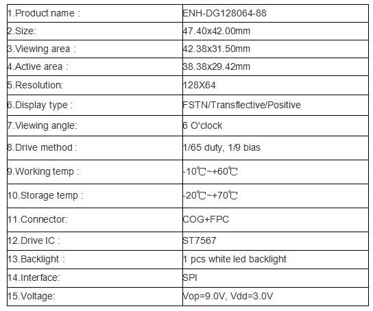 ENH-DG128064-88 is a newly customized product, good contrast, FSTN, Positive LCD; IC ST7567; mounted with backlight. Shenzhen Enrich Electronics specialize in custom LCDs more than 7 years, could help customer design the projection.